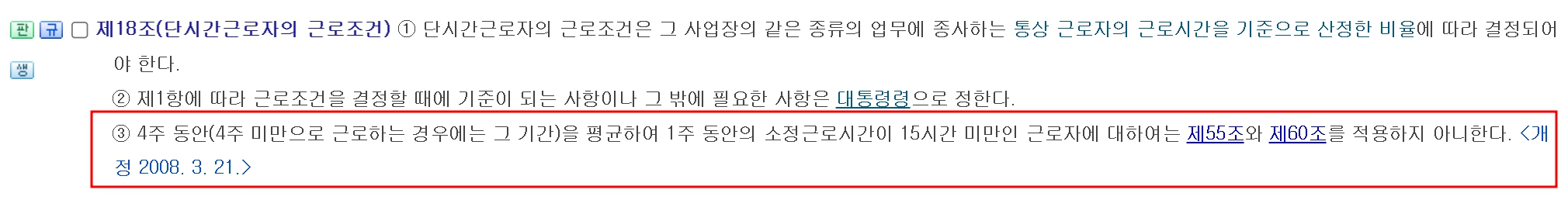 2. 1주 40시간 미만 근무 시 (파트타임 근로자)