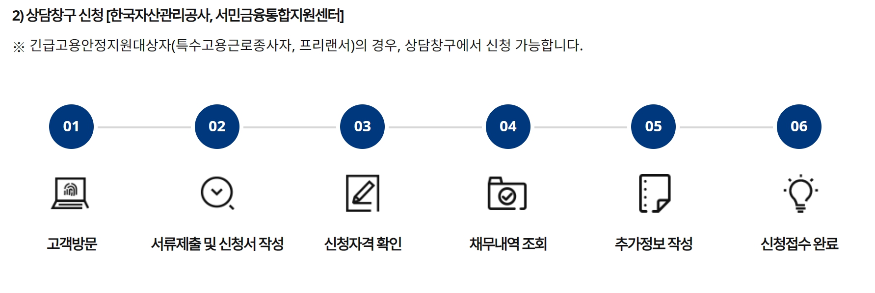 오프라인 방문 신청은 금융 기관 또는 새출발기금 상담 센터를 통해 직접 신청하는 방식입니다. 신청자는 현장에서 자신의 금융 상황을 설명하고, 상담을 통해 적절한 지원 방법을 안내받습니다.