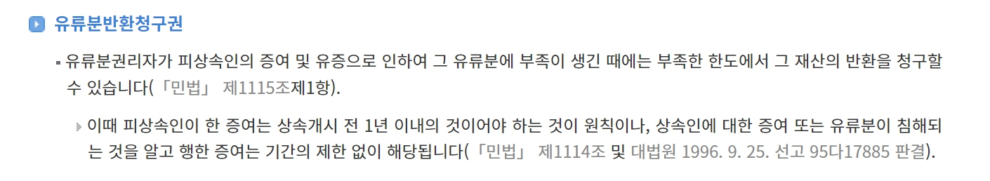 아래 생활법령정보 사이트에서 유류분 반환청구권에 대해 반드시 확인해 보세요!