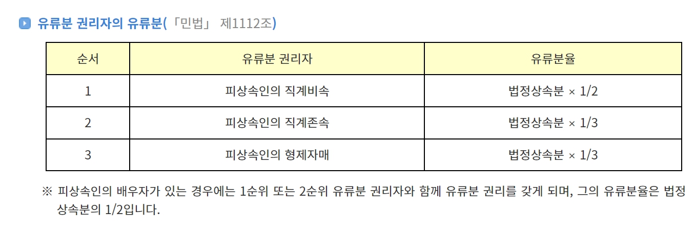 - 형제자매는 2023년 헌법재판소의 위헌 결정에 따라 더 이상 유류분을 청구할 수 없습니다.