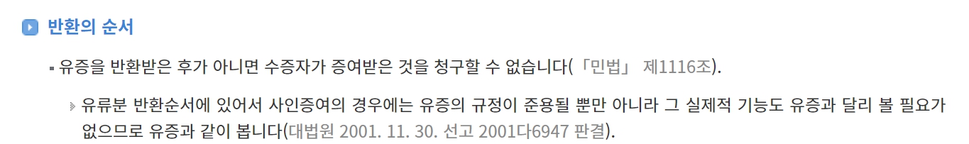 첫째, 증여나 유증의 순서입니다. 민법 제1116조에 따르면, 증여에 대한 유류분 청구는 유증 반환이 완료된 이후에만 가능합니다.