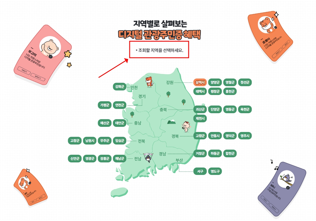아래 지도에서 지역별 혜택을 조회해 보시길 바랍니다. 할인부터 여행지 추천까지 다양한 정보를 얻을 수 있습니다.