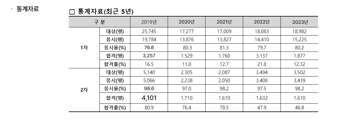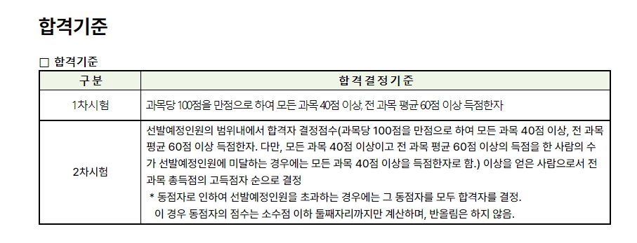 각 과목별 만점의 40% 이상, 전 과목 평균 60% 이상을 득점해야 합격할 수 있습니다