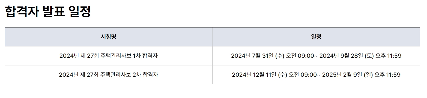 주택관리사 시험 일정