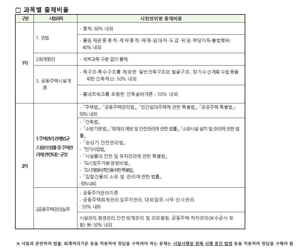 주택관리사 시험과목