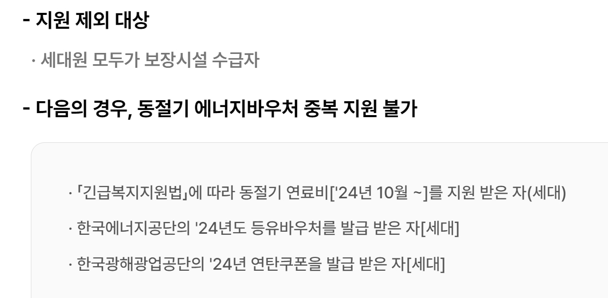 단, 지원 대상 기준은 매년 변경될 수 있으므로, 정확한 정보는 에너지바우처 홈페이지를 통해 확인해야 합니다.