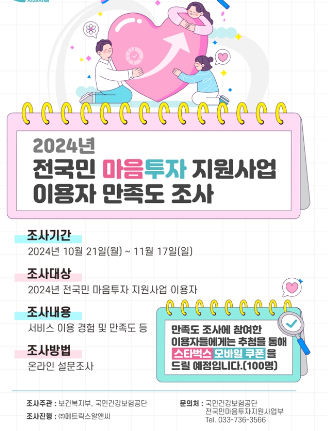 2024년 10월 21일부터 11월 17일까지 4주간 만족도 조사가 진행되며, 이는 향후 정책 개선에 중요한 자료로 사용될 예정입니다.