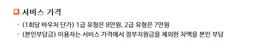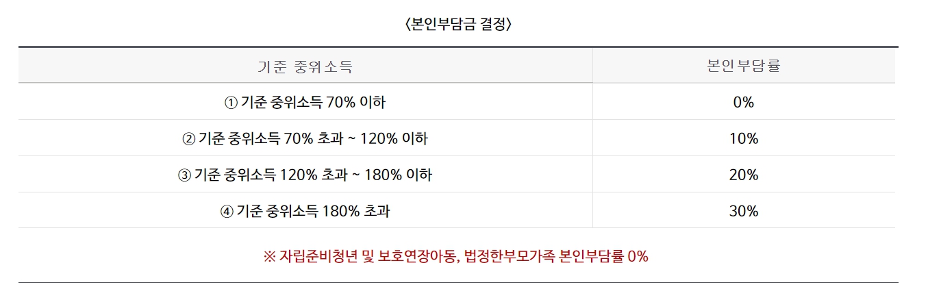 이렇게 본인부담금은 신청자의 소득에 따라 차등 부과되며, 구체적인 금액은 신청 시 복지로 누리집이나 상담기관을 통해 안내받을 수 있습니다.