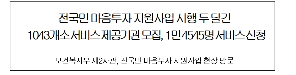 최근 정부는 전국민 마음 투자 지원 사업에 새로운 기능을 추가하고, 지원 대상을 확대하는 등 변화를 예고했습니다.