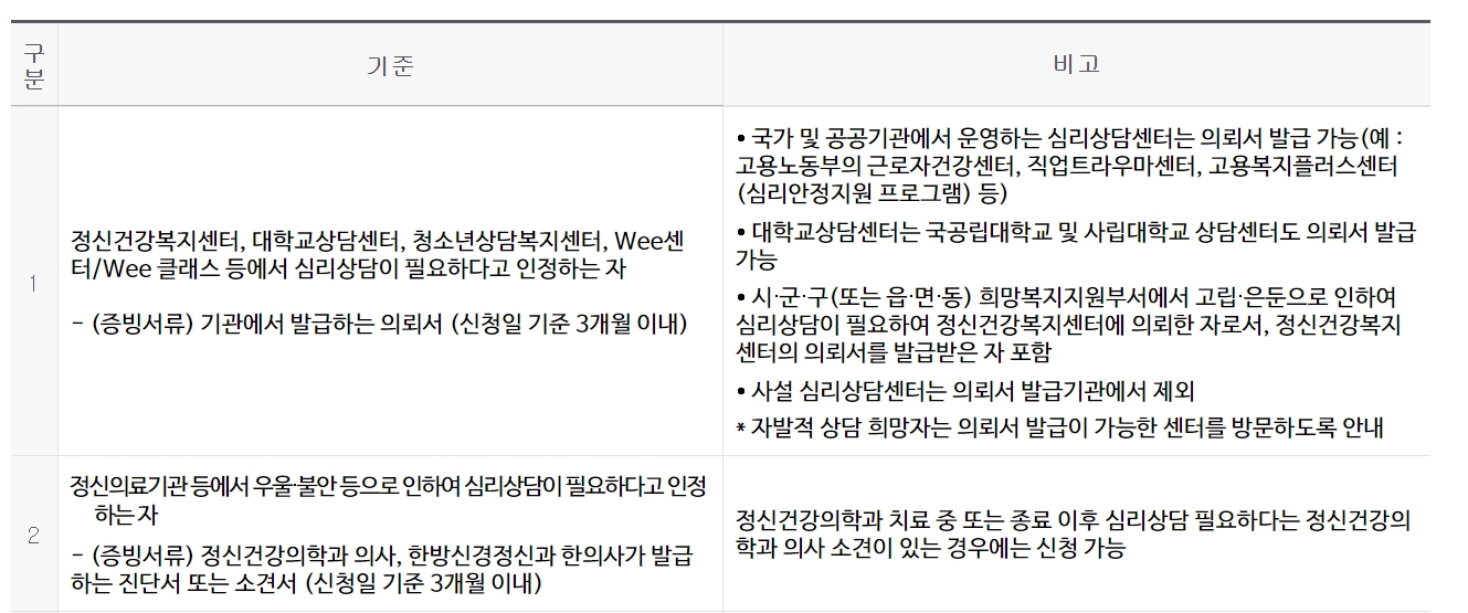 심리적 어려움을 겪는 국민들에게 최대 8회의 상담을 제공과 더불어 최대 64만원까지심리 상담 비용을 지원합니다. 이를 통해 많은 사람들이 경제적 부담 없이 상담을 받을 수 있게 되었습니다.