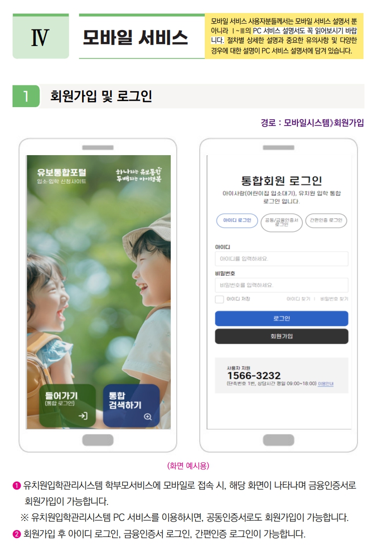 유보통합포털에서는 회원가입 및 입소·입학 신청 방법을 포함한 사용 설명서를 제공합니다.